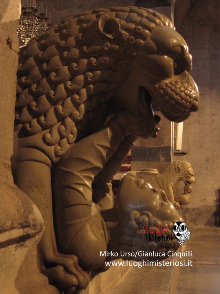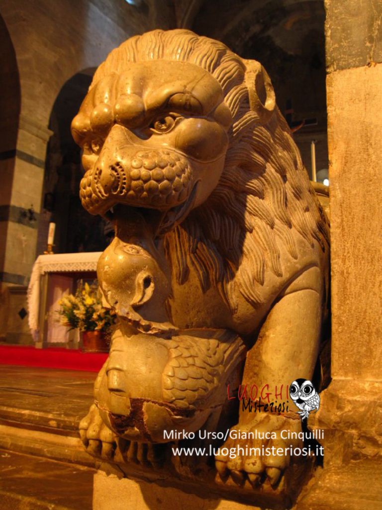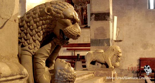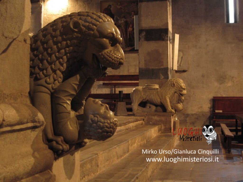 Ci sono poi due leoni stilofori (opera del XIII secolo della bottega del Civitali) provenienti da un pulpito non più esistente, l’uno con una criniera arruffata atterra un uomo armato di coltello, l’altro con la criniera invece liscia e ordinata, un drago.