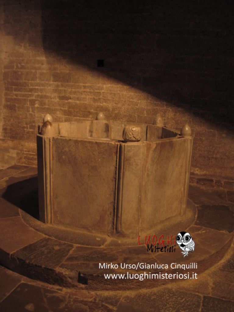 L’antico fonte battesimale è del duecento, presenta pianta esagonale e sul bordo riporta alcune piccole sculture di frutti.