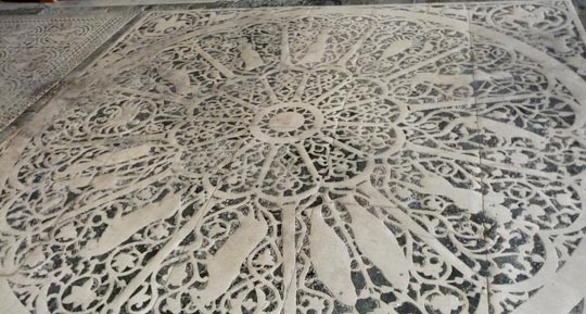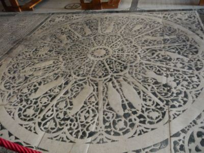 Non può non stupire che in un tempio così altamente mistico faccia la sua presenza il mistico vaso che si trova al centro di un ottagono di cui il simbolismo è significativo trattandosi del concetto di rinascita e di passaggio tra cielo e terra evidenziandone il significato di veicolo che contiene il Verbo.