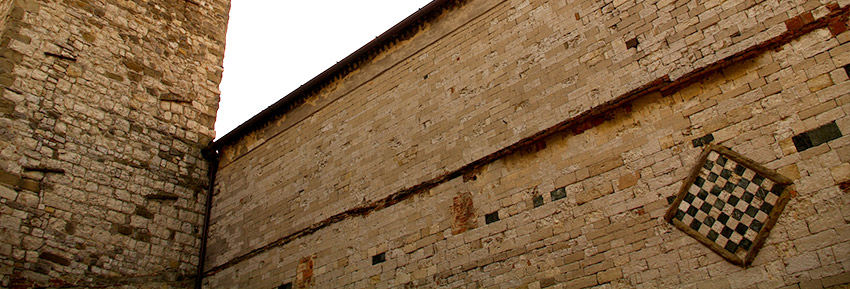 E’ documentata dal 984. La facciata con un profilo a capanna, nasconde la divisione interna in tre navate. Insolite le decorazioni esterne, la “scacchiera” sul lato sinistro e la lunetta, in marmo verde con croce in alberese, sopra il portale di accesso, incorniciato da stipiti scanalati.