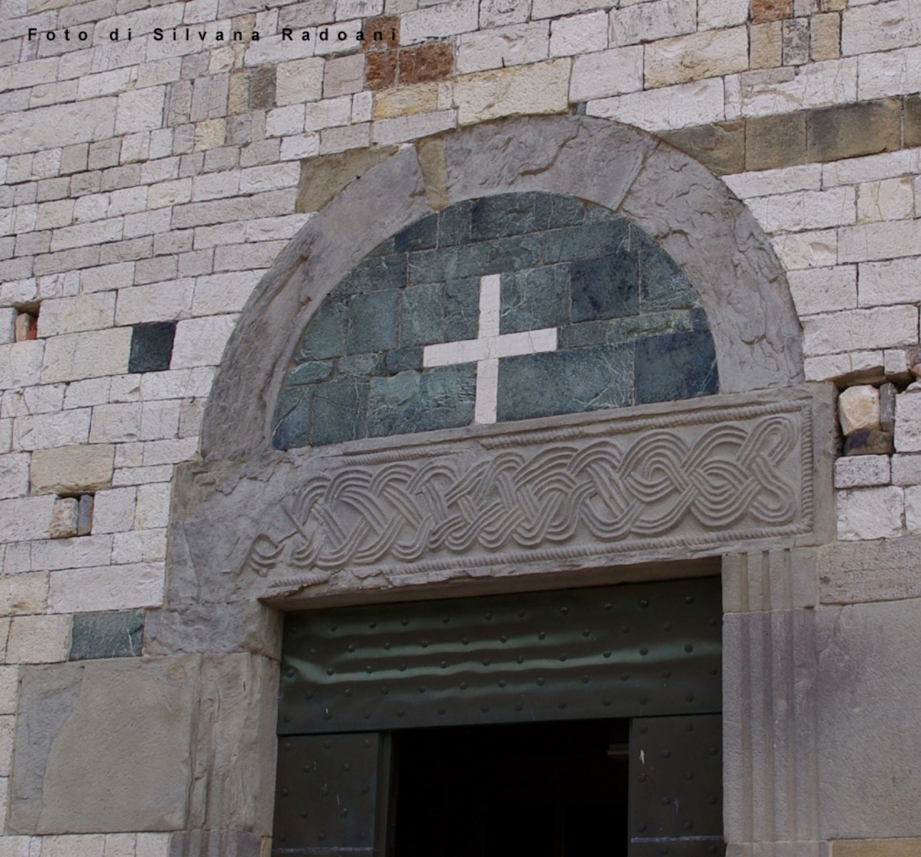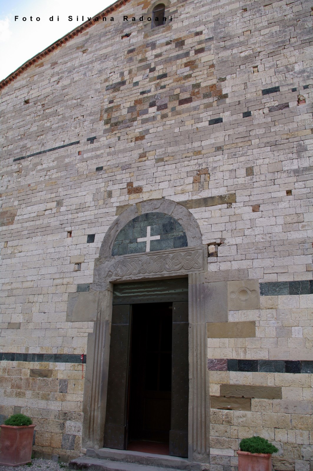E’ documentata dal 984. La facciata con un profilo a capanna, nasconde la divisione interna in tre navate. Insolite le decorazioni esterne, la “scacchiera” sul lato sinistro e la lunetta, in marmo verde con croce in alberese, sopra il portale di accesso, incorniciato da stipiti scanalati.
