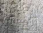 La chiesa, realizzata impiegando materiali edilizi di risulta provenienti con ogni probabilità dall’abbandonato palatium Bellumvidere di Federico II, in alto a destra presenta una triplice cinta, al cui fianco si può scorgere un’altra incisione, una griglia.