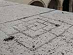 Recandomi verso l’ultima arcata del chiostro, quella che mi porta all’ingresso dell’ex convento delle monache di clausura, è possibile ammirare, inciso in verticale, un bellissimo esemplare di “Triplice Cinta”.
